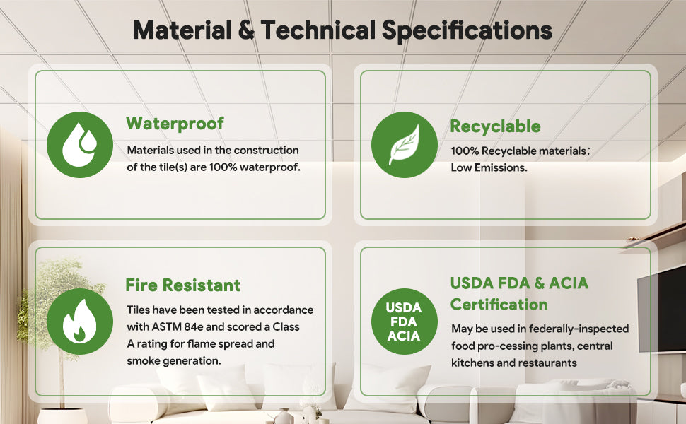 Smooth White Drop Ceiling Tile 2ft x 2ft, PVC Ceiling Panel 24 x 24in – Waterproof, Washable and Fire-Rated - High-Grade PVC to Prevent Breakage-Package of 12 Tiles